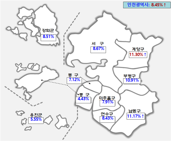INCHEON, SOUTH KOREA – Incheon's total land area has expanded to 1,069.5 square kilometers (approximately 412.9 square miles), marking a substantial 2.4 square kilometer (around 0.9 square miles) increase compared to the previous year. This growth, revealed in the 2025 cadastral statistics released by the Ministry of Land, Infrastructure and Transport on April 1st, translates to an estimated economic value surge of 2.3 trillion Korean Won, or approximately $1.7 billion USD (based on the 2024 officially assessed land prices in adjacent areas).