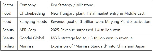 SEOUL — The global phenomenon known as the "K-Wave" is no longer just about music and drama; it has firmly shifted into the realms of lifestyle and consumption. In 2025, South Korean food and beauty companies saw unprecedented success, with several firms surpassing the 1 trillion won revenue mark. As 2026 begins, these industry giants are pivoting toward new territories, including the Middle East, Europe, and Central Asia, to maintain their explosive momentum.
