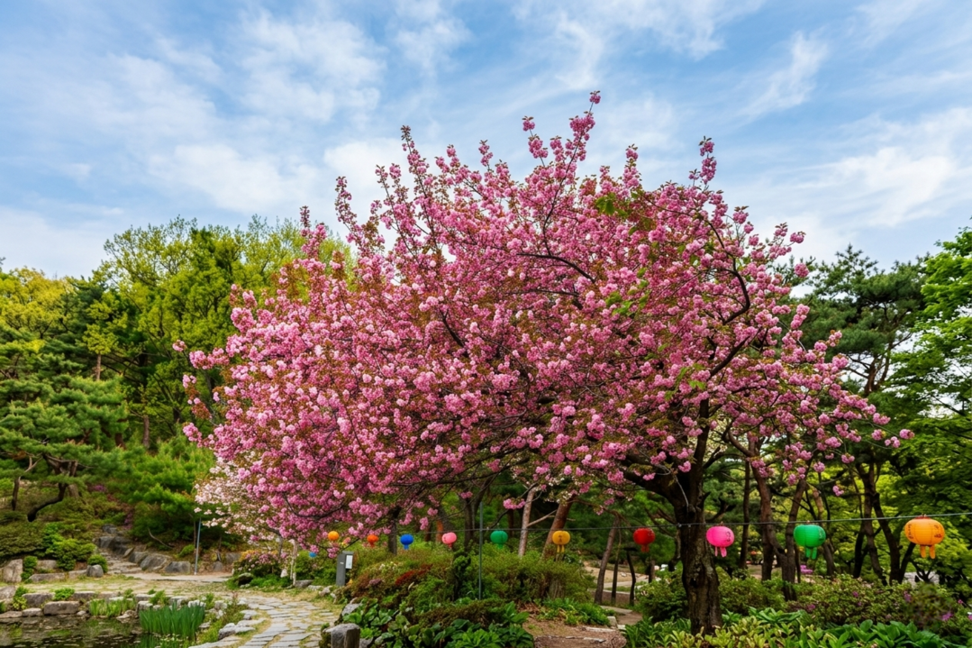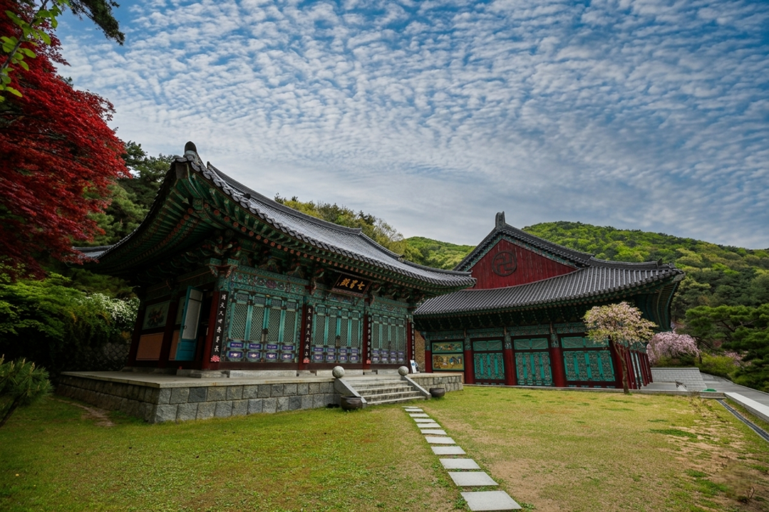 The cherry blossoms at Gakwonsa Temple in Cheonan are in full bloom, attracting tourists to the area.