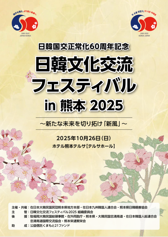 To commemorate the 60th anniversary of the normalization of diplomatic relations between Korea and Japan, the 'Korea-Japan Cultural Exchange Festival in Kumamoto’ is scheduled to be held on the 25th and 26th of this month at the Terusa Hotel in Kumamoto City, Kumamoto Prefecture.