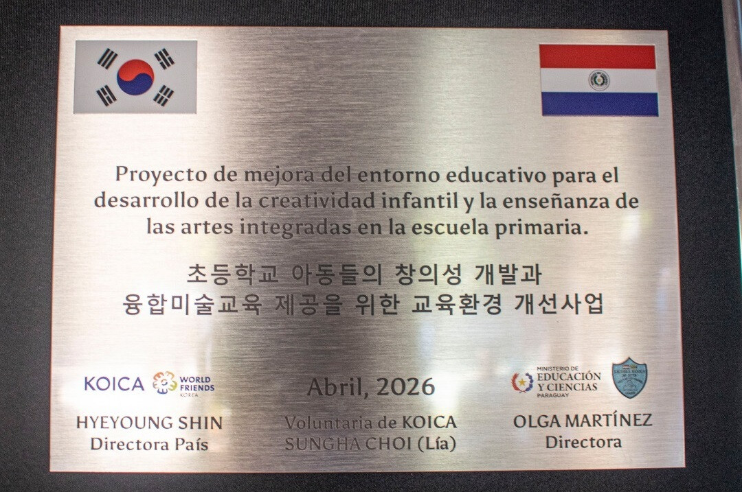 On April 23, the “Villa de las Madres” Basic School in Luque hosted a donation ceremony for a microproject led by KOICA volunteer Sungha Choi (Lia). Titled “Strengthening the Educational Environment for Children’s Creativity and Integrated Arts,” the project focused on upgrading school facilities and providing specialized teacher training.