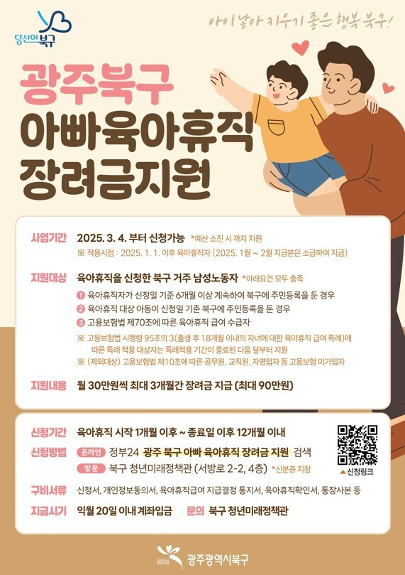 GWANGJU – In a proactive move to foster a more inclusive child-rearing environment and alleviate the financial burden on families, the Buk-gu District Office of Gwangju Metropolitan City announced on Sunday that it will resume its "Paternal Childcare Leave Subsidy" program for 2026.