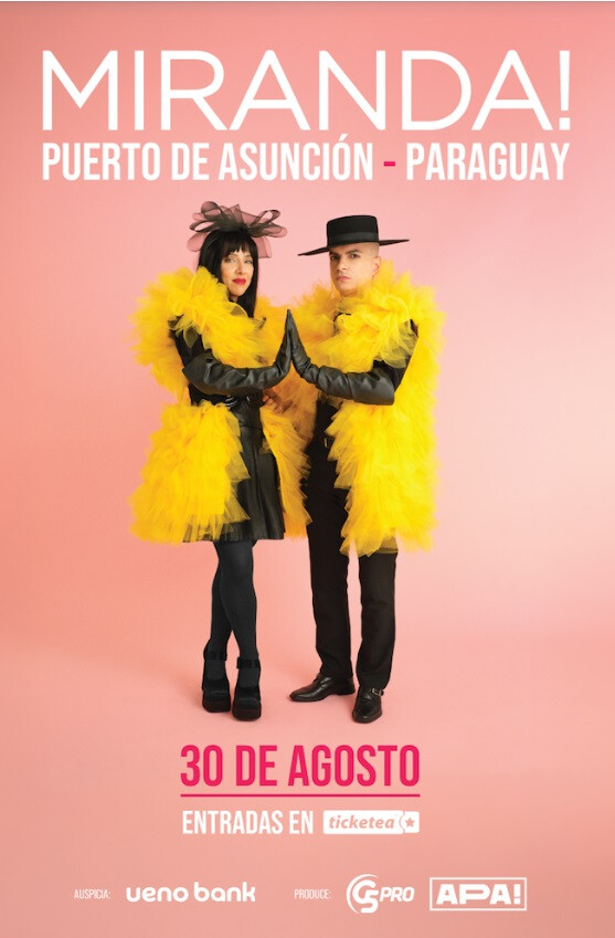 ASUNCIÓN, Paraguay - The acclaimed Argentine electropop duo Miranda!, renowned for their flamboyant performances and catchy anthems, are scheduled to bring their vibrant musical spectacle to the Port of Asunción on August 30th. The highly anticipated concert will mark a significant stop on their extensive international tour. Tickets for this event will be available for purchase starting April 11th at 11:00 AM through the official Ticketea online platform and designated physical outlets.