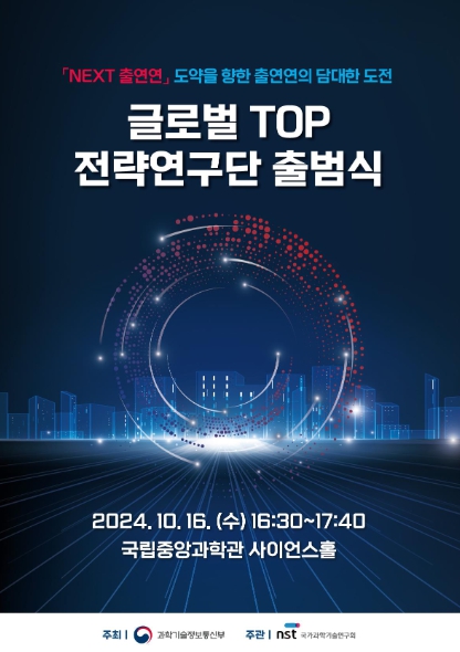 [Global Economic Times] On October 16, the Ministry of Science and ICT and the National Research Council of Science and Technology held an inauguration ceremony to commemorate the launch of the 'Global TOP Strategic Research Group' selected this year and to present to the public the mission and plans of each research group. held.